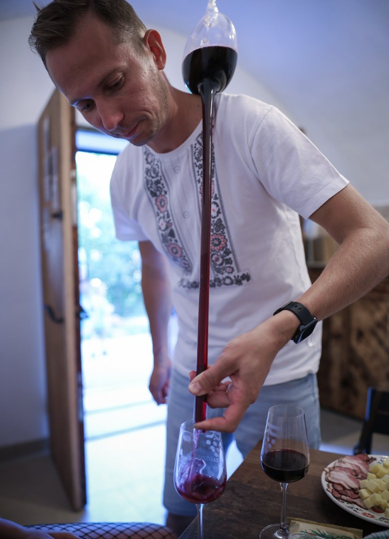 Obec Ježov jsem si musel kvůli Víno Krakovič hledat na mapě. Vedlejší obce jsou známé svými vinařstvími – sousedí s Žádovicemi, Žeravicemi či Skalkou – sama je vinařsky ještě spíše neobjevena. Pavel Krakovič zde žádné své vinice nemá. Surovinu získává od jiných pěstitelů ve slovácké podoblasti. Vždy jde o ruční sběr, který často provádí svépomocí. I další výrobní proces je do značné míry ruční prací, využívají se nejen nerezové tanky, ale také dřevěné sudy a skleněné demižony. Ostatně vzniká jen 2 000 lahví ročně z pár odrůd. Vzhledem ke krátké historii vinařství (vzniklo až v roce 2023) je zatím těžké určit jeho profilační odrůdu. Nám se nejvíce líbil vážnější Ryzlink rýnský z barikových sudů, příjemné také bylo na vjemy hodně bohaté Rulandské šedé nebo naopak vcelku jednoduché a pitelné rosé. Aktuální nabídka je k nahlédnutí v e-shopu.