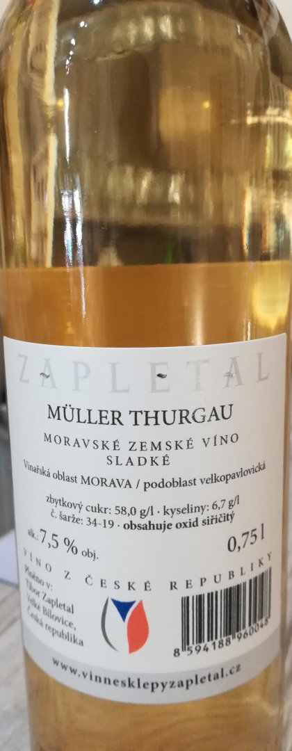 Müller Thurgau 2019, Vinné sklepy Zapletal