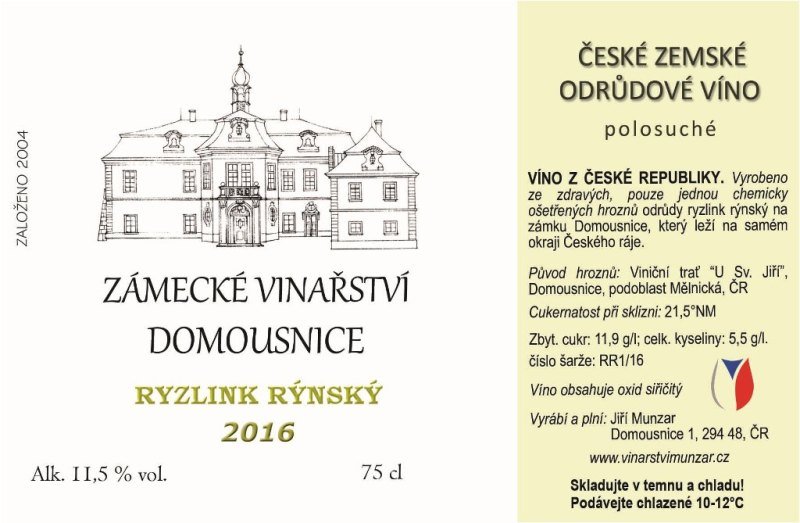 Ryzlink rýnský 2016, Zámecké vinařství Munzar