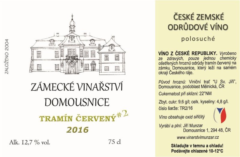 Tramín červený č. 2 2016, Zámecké vinařství Munzar