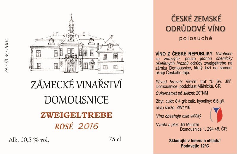 Zweigeltrebe Rosé 2016, Zámecké vinařství Munzar